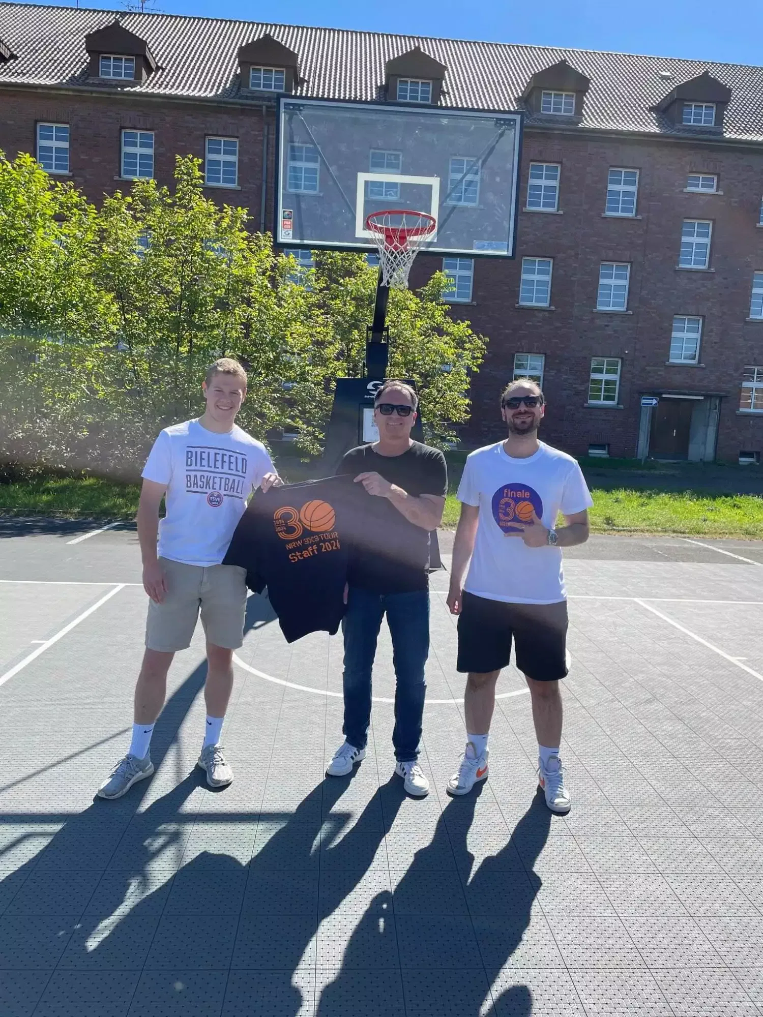 Auf dem Gelände des Sport Community Hangars in Bielefeld steht bereits der erste Center Court für die NRW3x3Tour in Bielefeld am 22.06.2024. Drei weitere Enlio-Courts kommen noch dazu, so dass am 22.06.2024 auf insgesamt 16 Courts (4 Enlio-Courts mit Schelde -Basketball Anlage) gespielt werden kann. Die ersten TeilnehmerInnen -T-Shirts und HelferInnen-Shirts sind gedruckt – es kann bald losgehen!