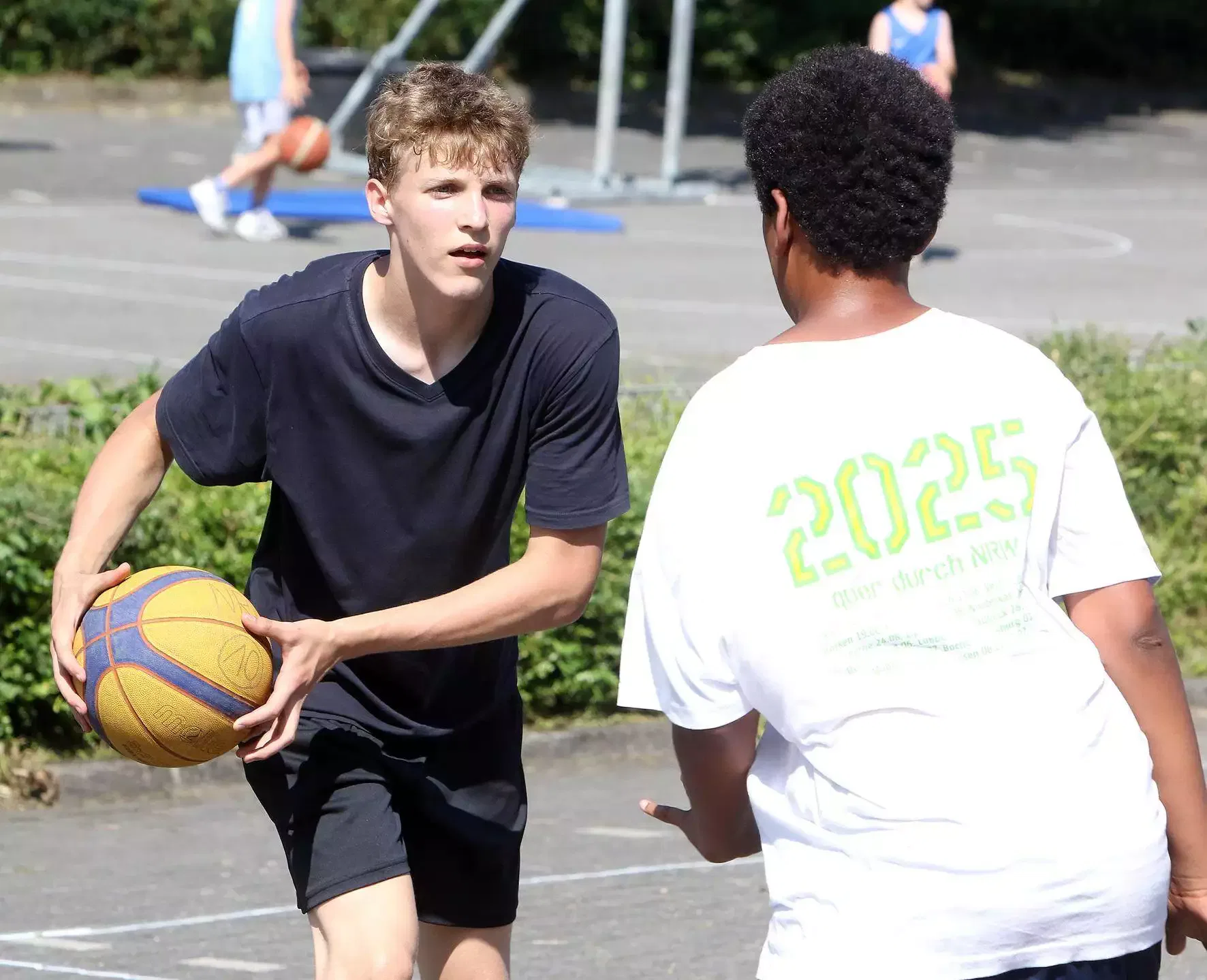 Der Basketballverein BG Kamp-Lintfort war Gastgeber des sechsten NRW3x3Tour Standortes der Tour 2025. Das Organisationsteam verwandelte den Parkplatz und Schulhof des Georg-Forster-Gymnasiums in eine große Eventfläche mit 3×3 Courts, Skaterfläche, Getränke- und Verpflegungsständen. WBV-Präsident, Uwe Plonka, eröffnete zusammen mit Bürgermeister, Dr. Christoph Landscheidt, Miro Roschewski (1.Vors. BG Kamp-Lintfort), Maxi Lipp (1.Vors. Stadtsportverband) und Bundesligaspieler, Joel Aminu, die Veranstaltung. Joel Aminu, aktueller Basketball-Bundesliga Spieler bei den Telekom Baskets Bonn, hat seine Basketballkarriere bei der BG Kamp-Lintfort begonnen und hat selber früher häufig bei der NRW3x3Tour mitgespielt. Er wünschte den 68 Teams viel Erfolg und faire Spiele! Bei sommerlichen Temperaturen um die 33 Grad Celsius wurde bis in die Abendstunden gespielt!