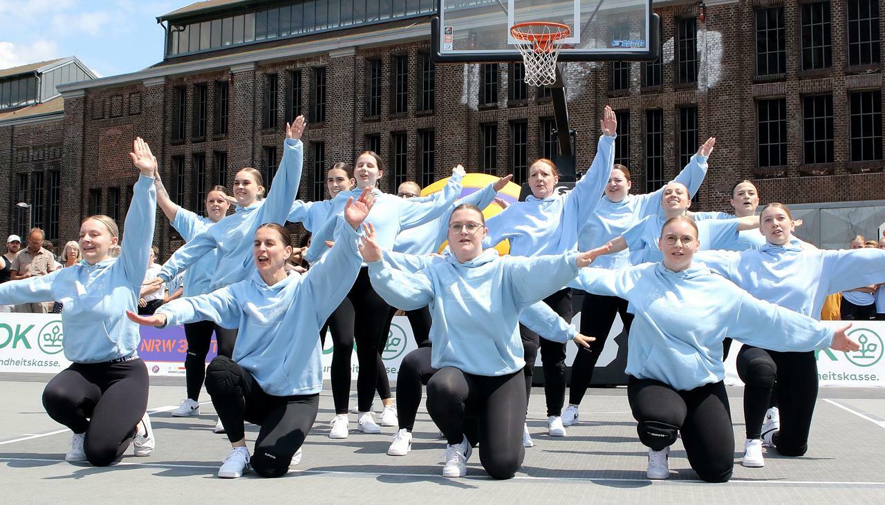 Die 30. NRW3x3Tour 2024 wurde am Sonntag, den 30.06.2024 mit dem Finale in Recklinghausen beendet. 133 Teams spielten um die begehrten Medaillen. Das NRW-Tour Team hatte zusammen mit der U16m von Citybasket Recklinghausen am Vortag dafür gesorgt, dass auf 20 Courts indoor und outdoor gespielt werden konnte. Mit Hilfe des Regenradars wurde genau berechnet, wann ein Spielen draußen auf dem Campus möglich sein könnte. So wurden von 12:30- 13:30 Uhr die ersten vier Runden ausschließlich in der Halle ausgetragen. Danach waren auch die Spielfelder auf der Außenfläche abgetrocknet, so dass alle 20 Courts benutzt werden konnten. Um 12:00 Uhr hatten zunächst die Cheerleader von Citybasket Recklinghausen ihren Tanzauftritt, bevor die Ehrengäste das 30. Finale eröffneten:
