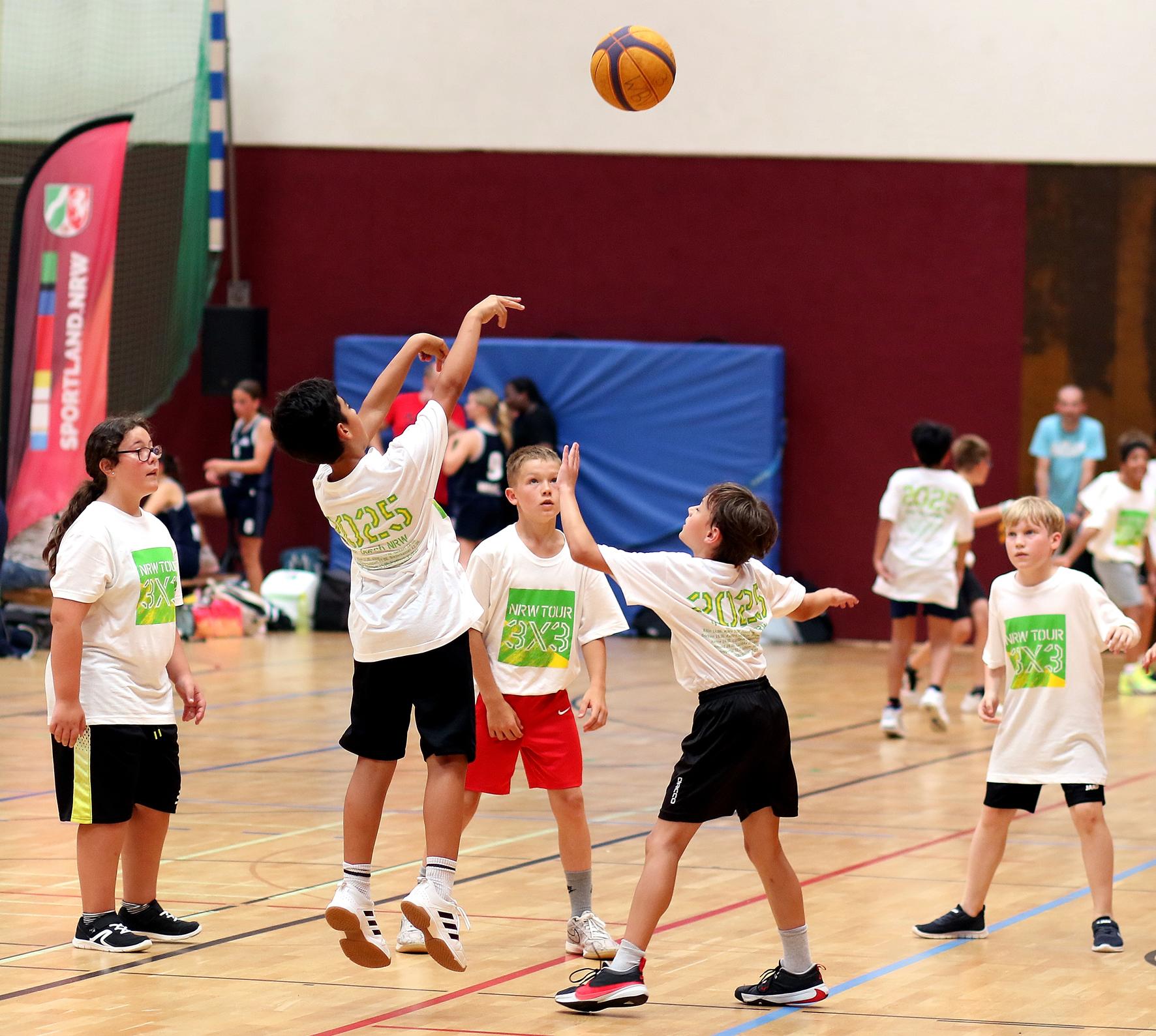 Nach den Eröffnungswürfen ging es dann auf die Felder. In 19 Spielrunden wurde bis 18:30 Uhr gedribbelt, gepasst und geworfen! Danach standen die Siegerteams der NRW3x3Tour 2025 fest: