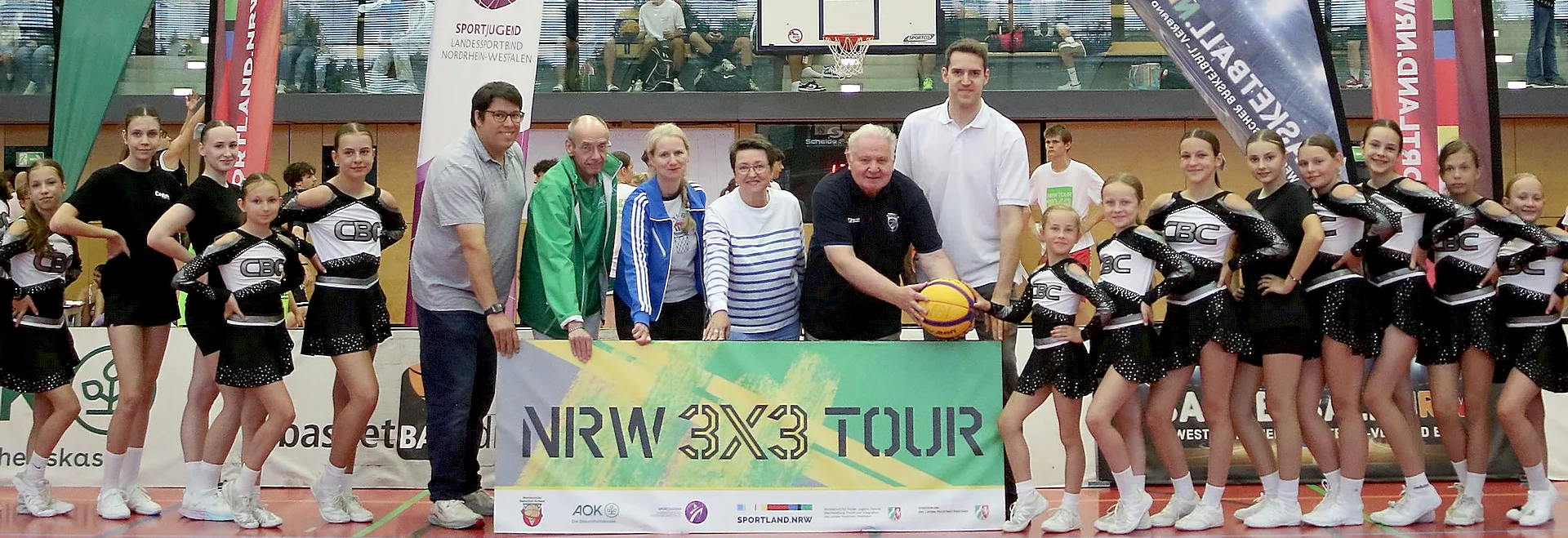 Das Finale der 31. NRW3x3Tour fand nicht vor, sondern in der Vestischen Arena am Campus Vest in Recklinghausen statt. Die Wetterprognosen waren eindeutig, so dass bereits alle Courts im Vorfeld in die Halle gelegt wurden. Es war ein wenig eng und wuselig, aber die 131 Teams konnten auf 14 Courts ihre Finalspiele austragen. Gastgeber Citybasket Recklinghausen stellte erneut an die 40 Courtwatcher und HelferInnen. Um Punkt 12:00 Uhr wurde das Finale von den Ehrengästen eröffnet, die von den Citybasket Cheerleadern (CBC) umrahmt wurden. WBV Präsident Uwe Plonka bedankte sich bei allen Partnern der Tour für die erneute Unterstützung, Carmen Plischke von der Staatskanzlei NRW stellte noch einmal die vielen ehrenamtlichen HelferInnen bei der gesamten Tour und speziell beim Finale in den Fokus. Herman-Josef Lemke- Bochem (AOK NordWest) wünschte verletzungsfreie und faire Spiele und Daniel Skakavac von der Sportjugend NRW lobte die gute Organisation der gesamten Tour.