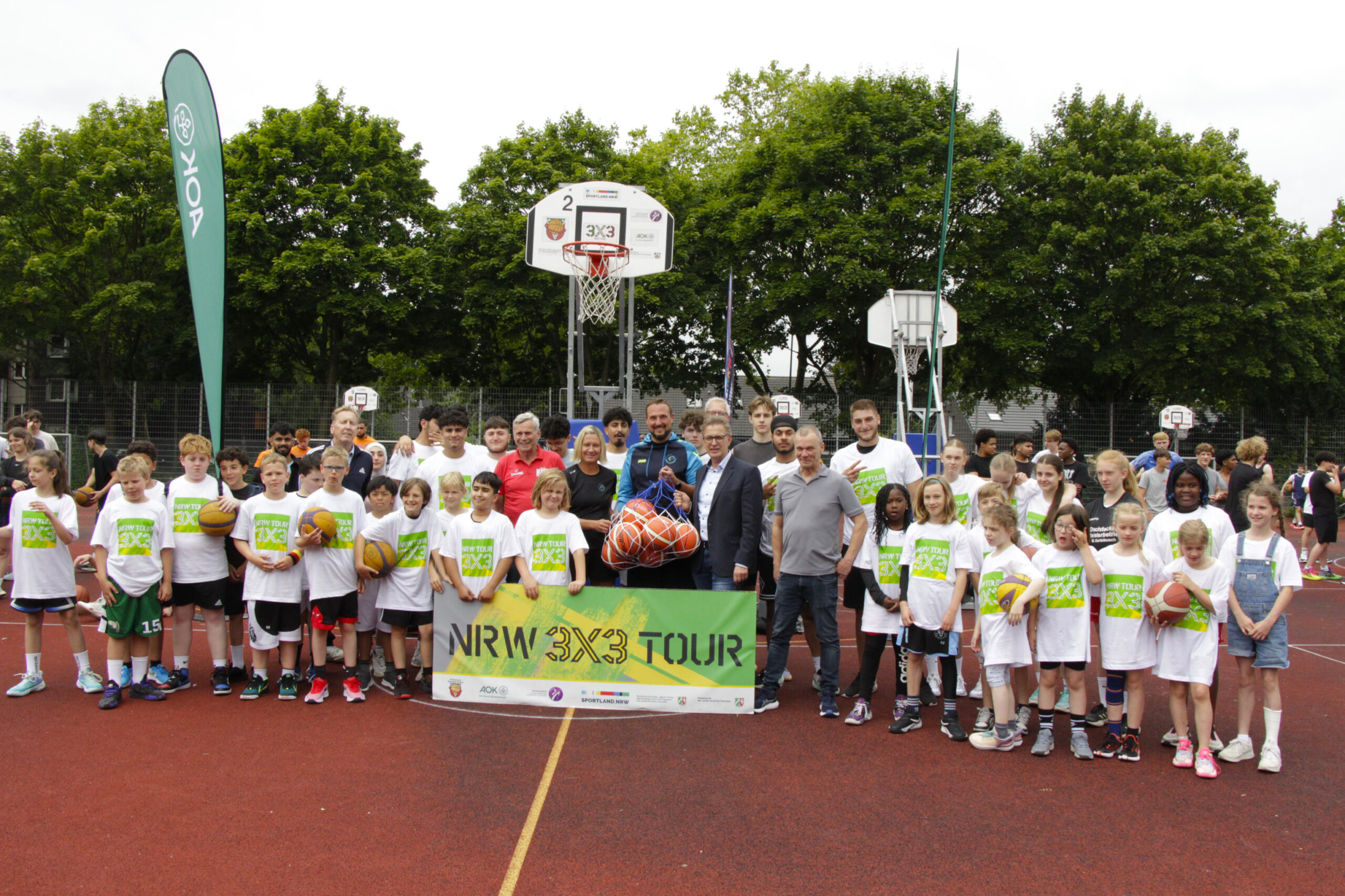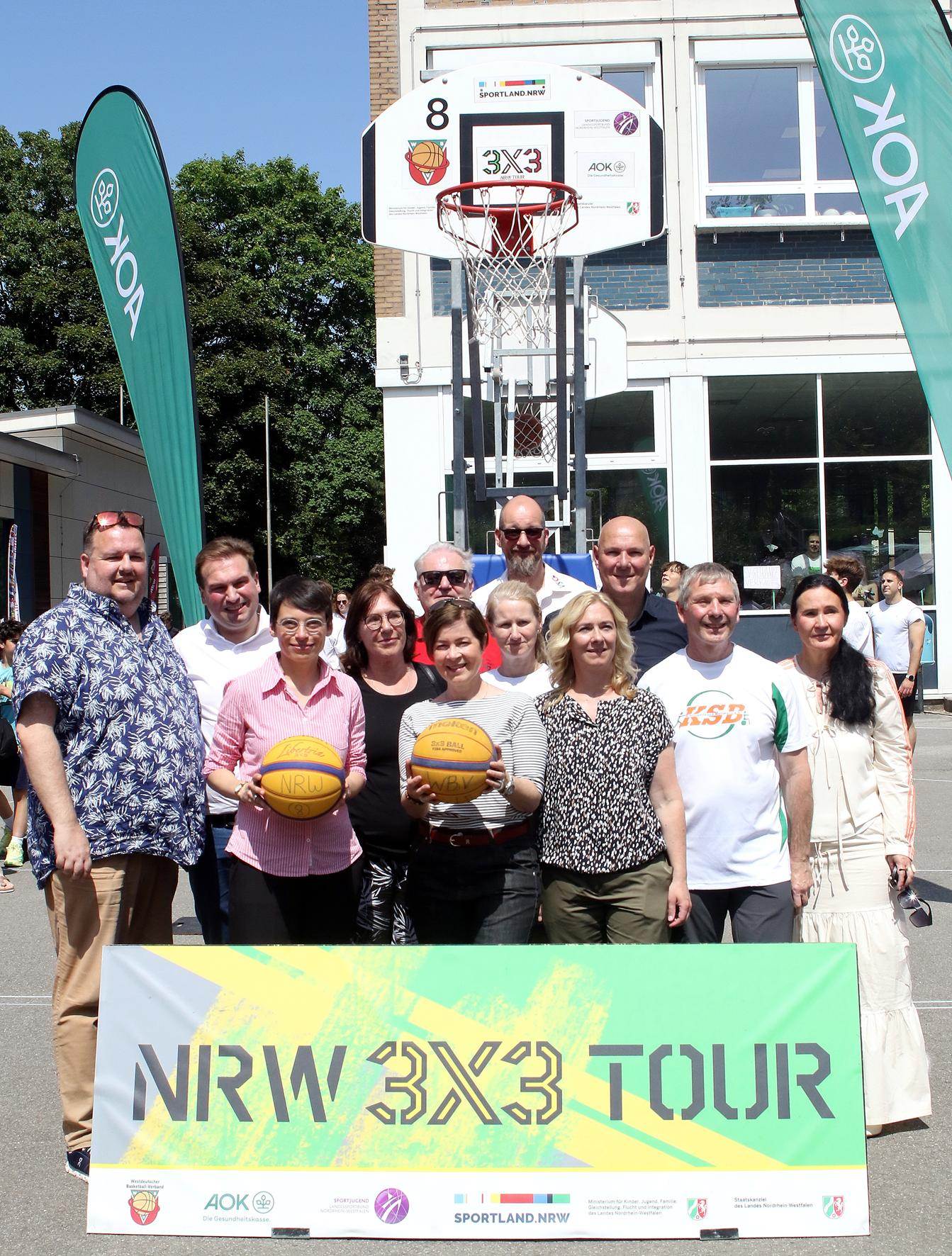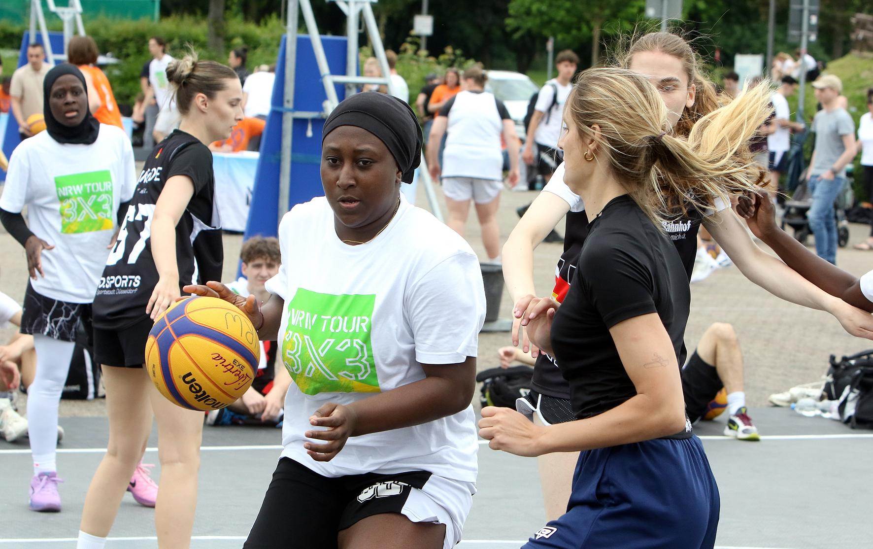 151 Teams kamen zum Auftakt der NRW3x3Tour 2025 nach Köln. Bei tropischen Temperaturen um die 33 Grad wurden die Teams aus NRW, Berlin, Niedersachsen, Hessen, Niederlande und Belgien von den Tourpartnern begrüßt. Um Punkt 11:00 konnten die Ehrengäste die 31. NRW3x3Tour eröffnen. Vertreten waren: Nina Mertens von der Staatskanzlei NRW (Sportland NRW), Stephanie Samel von der Sportjugend NRW und Sandra Kisters-Nuderscher von der AOK Rheinland/Hamburg. Begleitet wurden sie von den Verantwortlichen der örtlichen Veranstalter, Anja Bongen (RheinStars Köln) und Sascha Lüttgens (Körbe für Köln). Zahlreichen HelferInnen der RheinStars Köln und Körbe für Köln unterstützten das NRWTour Team beim Auf-und Abbau und Ablauf des Turniers.