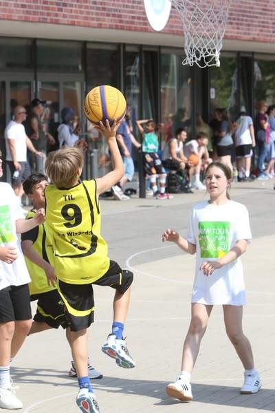 Es wurde ein abwechslungsreiches Programm von den Organisatoren der NRW3x3Tour, der Westdeutsche Basketball-Verband (WBV), die AOK NordWest, das Land Nordrhein-Westfalen und die Sportjugend NRW gemeinsam mit dem Herner TC, der Realschule Crange, dem Pestalozzi-Gymnasium und dem Mulvany Berufskolleg auf die Beine gestellt. „Wir freuen uns sehr, dass wir dieses tolle sportliche Ereignis hier nach 2023 wieder in Herne umsetzen können und für die NRW3x3-Tour am Start sind. Der WBV, die vielen ehrenamtlichen Helfer, unsere Basketballabteilung und alle Förderer der Tour haben wieder alles getan, um dieses tolle Event für alle Aktiven durchzuführen – ein tolles Erlebnis“, sagte Wolfgang Siebert, erster Vorsitzender des Herner TC. Volker Gößling, Schulleiter des Pestalozzi-Gymnasiums ergänzte: „Wir freuen uns, dass wir gemeinsam mit den anderen Schul-Kooperationspartnern Realschule Crange und dem Mulvany Berufskolleg Gastgeber der NRW3x3Tour in Herne sein dürfen.“ Dr. Pia Klems, Beraterin im Schulsport an der Realschule Crange freute sich: „Alle sind mit viel Begeisterung dabei und wir sehen förmlich die Freude und den Einsatz der Kinder und Jugendlichen beim Basketball.“